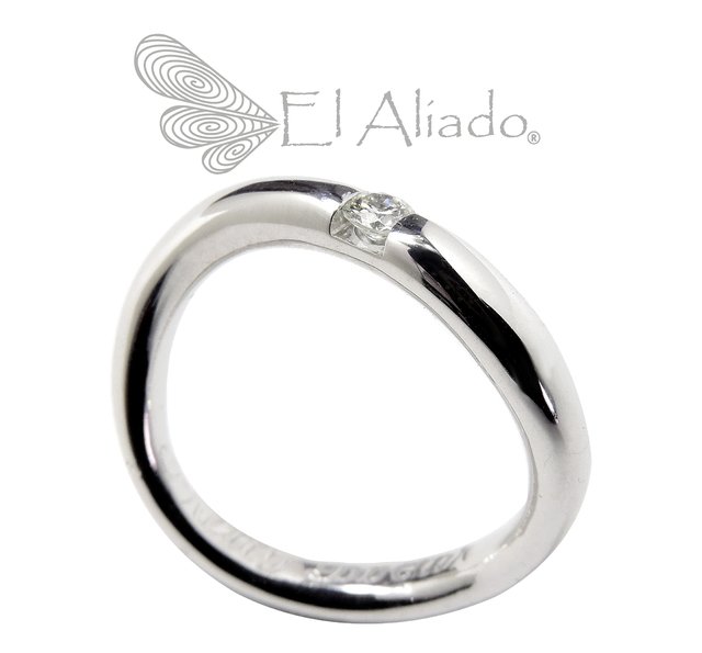 Anillo de compromiso en oro blanco Infinito tubular con un circón suizo / o con un diamante natural de 10 pts.